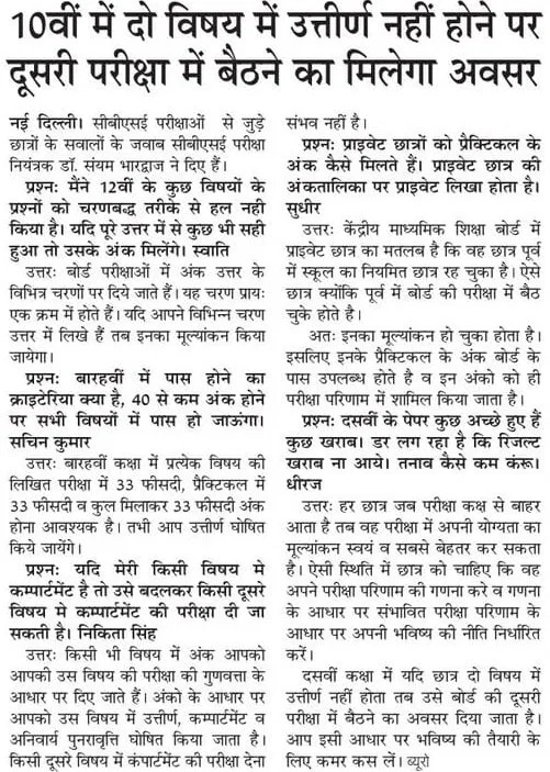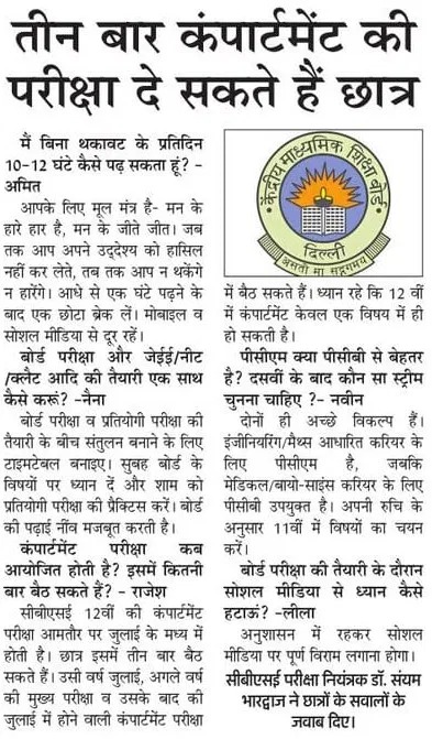 Question Answers with Controller of Examinations, CBSE (Hindi) Dated 03/03/2025 |