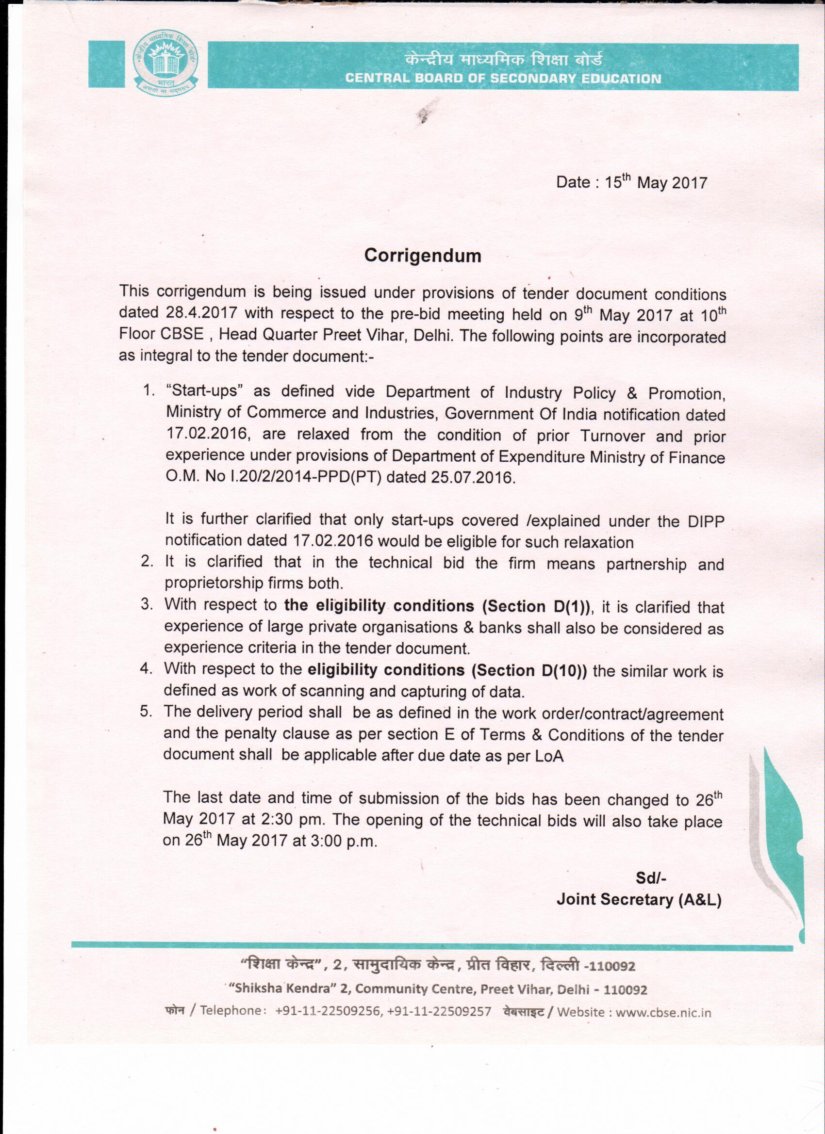 Tender For Outsourcing of Security Services for Central Board Of Secondary Education,Delhi & NCR